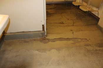 McMorris started by slanting the Concrex application towards the drain to prevent standing water on the floor. By coving Concrex up the new FRP panels, he ensured water could not seep in, creating mold again. McMorris created barriers in the area, using Concrex, to prevent water from flowing into the dorm area creating slipping hazards.