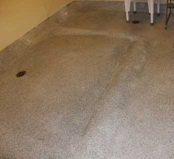 Above: Concrex used to created a border to prevent water from leaving the shower area. The Epoxicote High Build coating and Vinyl Chips create a more appealing and clean looking area.